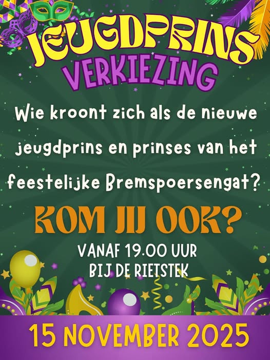 Ook dit jaar wordt door middel van diverse spannende spelen de nieuwe jeugdprins, -prinses en adjudant bekend gemaakt. Om 19.00 uur openen de deuren voor iedereen die met het nieuwe carnavalsseizoen in wil luiden.